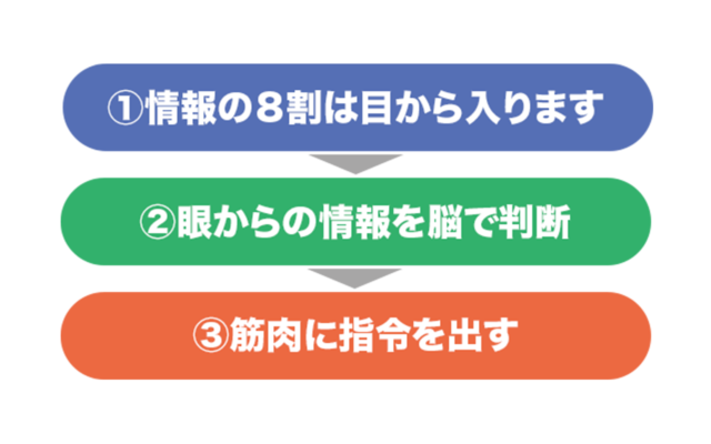 眼のはたらきは、運動能力やパフォーマンス、メンタルにかかわっています。また、思考と目の動きは連動しているので、眼を動かすことで、思考も活性化されます。